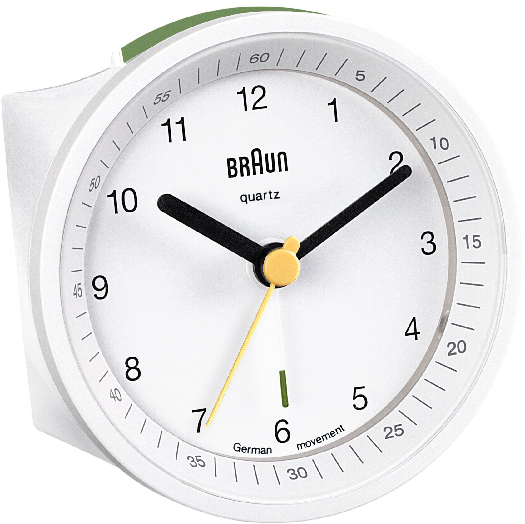 Okunması kolay kadran düzeni ve Braun'un ödüllü tasarım geçmişiyle eşanlamlı hale gelen ikonik sarı saniye koluna sahiptir. BC01B, entegre ayak erteleme/ışık özelliği, geliştirilmiş mekanizma ve ışıklı uçlu saat ve dakika kolları eklenerek güncellendi. Temiz, sade kadran ve ışıklı uçlu kontrast kollar harika bir okunabilirlik sunar ve kuvars tik hareketi sessiz ve hassastır.