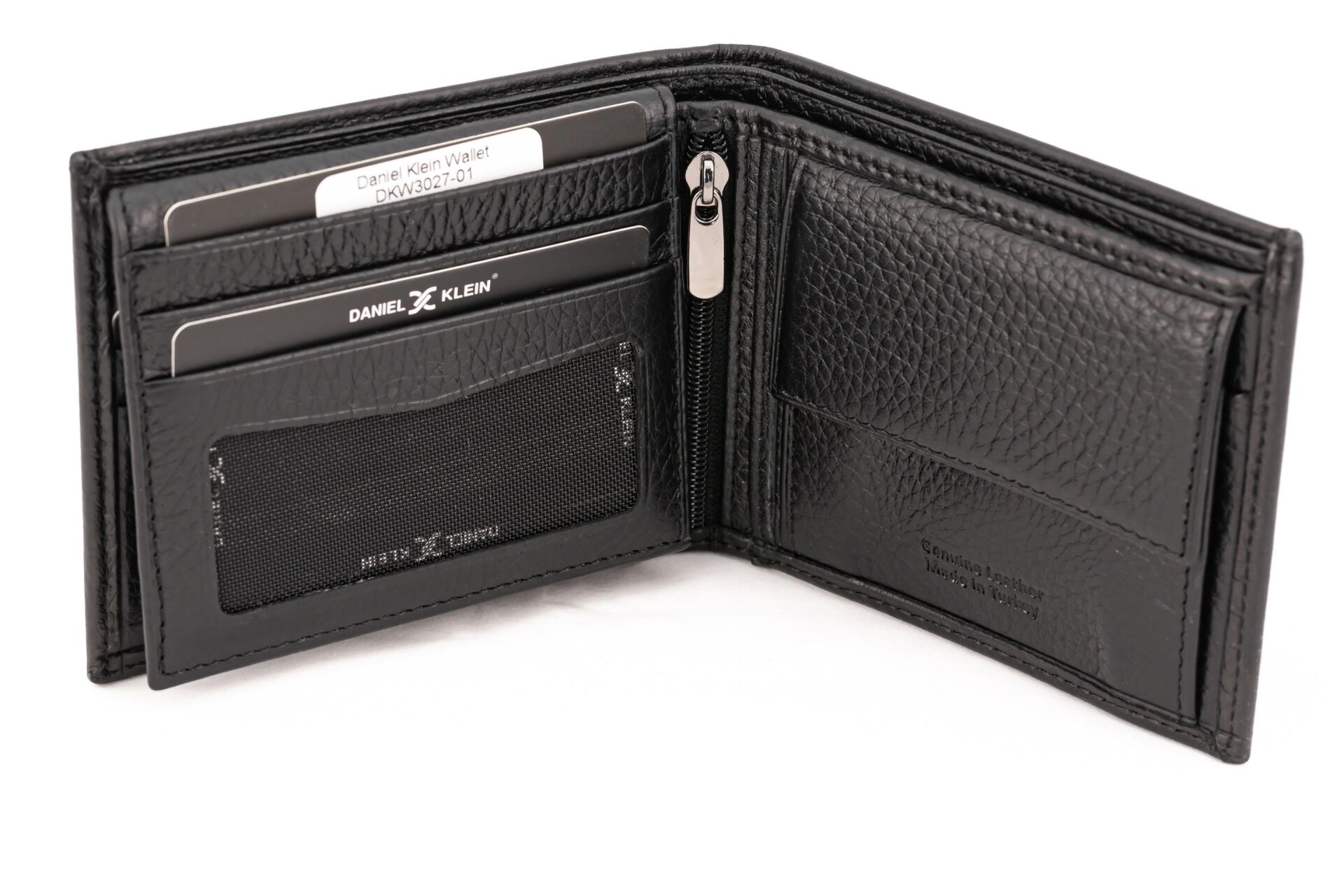 Daniel Klein DKW3027-01 hakiki deri cüzdan; 6 bölme kartlık, kartiviztlik, 1 bölme vesikalık fotoğraf vb kişisel özel notlarınızı saklayabileceğiniz, bozuk para saklamak için 1 adet fermuarlı iç cepten, 2 bölme nakit para saklayabileceğiniz bölmelerden oluşur.