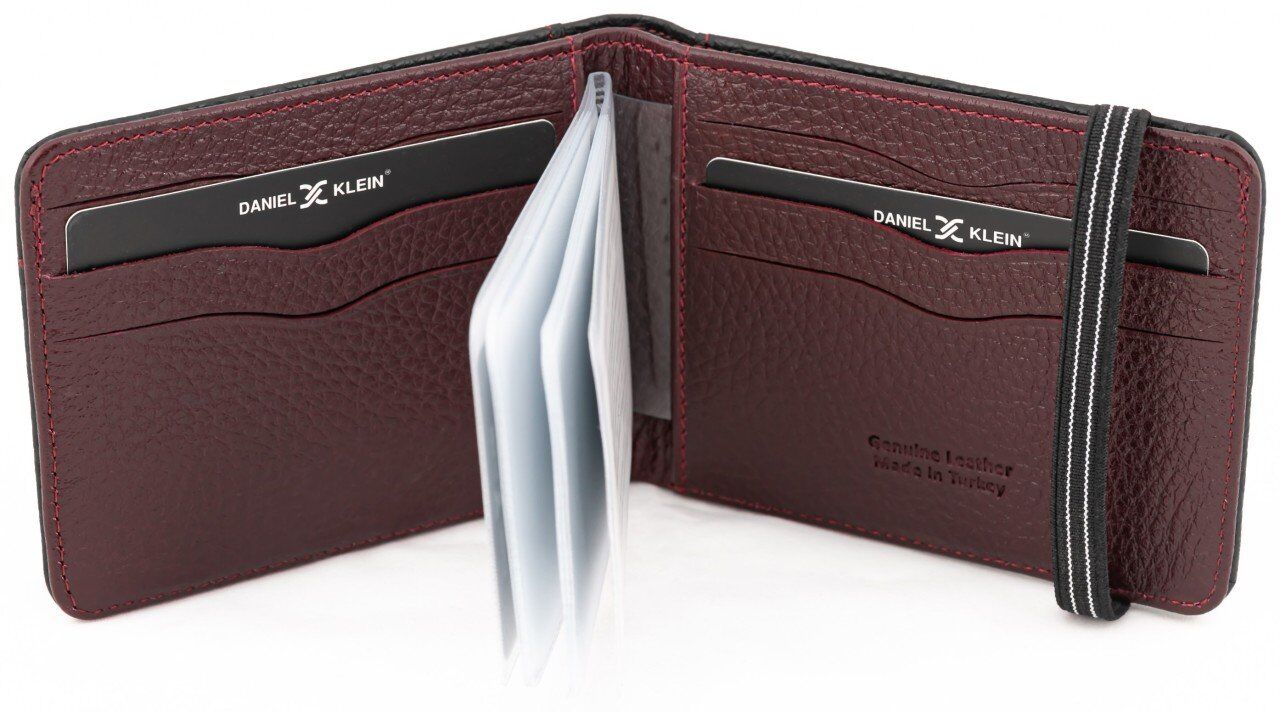 Daniel Klein DKW3016-01 hakiki deri erkek cüzdanı iç rengi bordo dış rengi siyahtır.