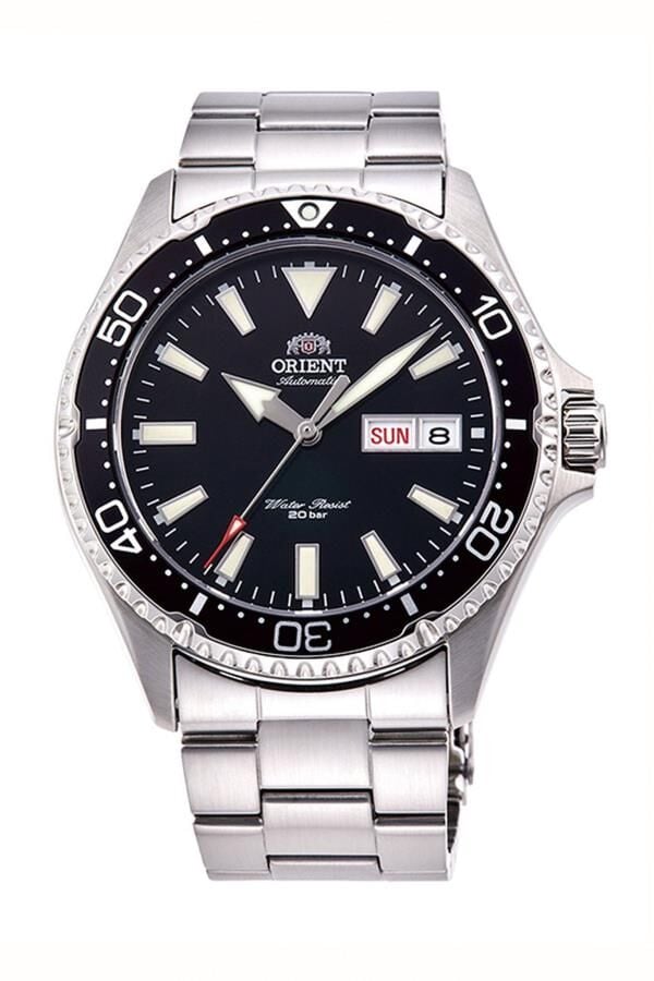 RA-AA0001B39B Diver tarzında siyahın büyüsü, çeliğin ağırlığı! Yeni Orient Kamasu koleksiyonu, gerek eşsiz tasarımı gerekse her koşula yanıt veren nitelikleriyle dünyanın dört bir yanından geniş bir kitleye sesleniyor. 42mm’lik ideal kasa büyüklüğü ile hem iş hem de dış mekan aktiviteleri için kusursuz bir Orient. Şık ve pürüzsüz paslanmaz çelik kasa ve kordona kontrast siyah kadran ve döner bezel, her koşulda zamanı izlemeye izin veren fosforlu belirgin çizgi göstergeler, ok uçlu akrep, saniye.